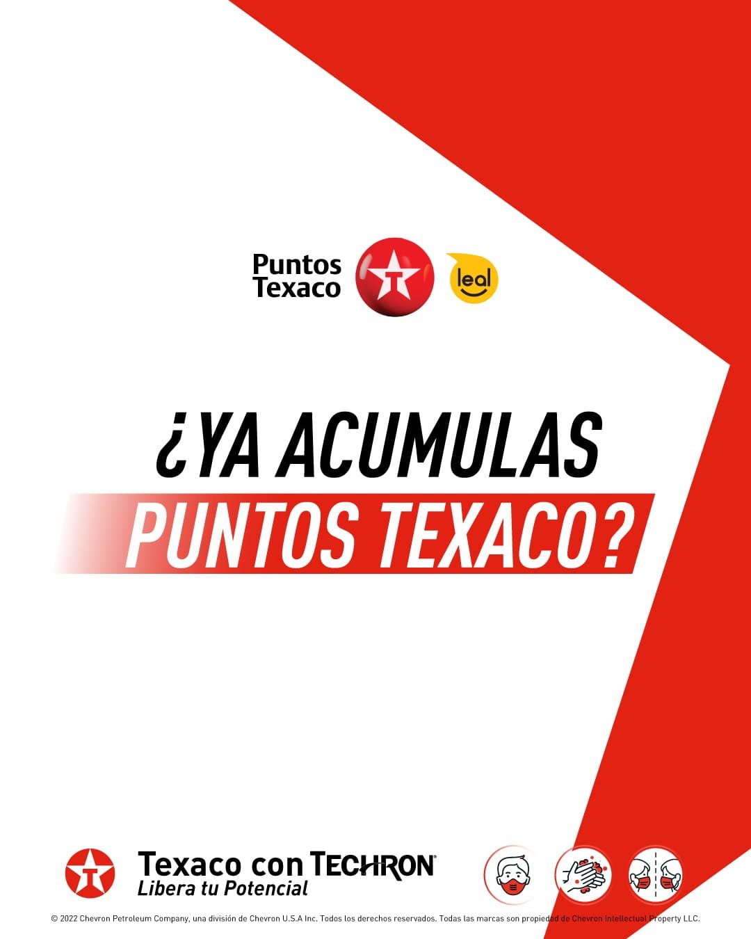 Acumulas y canjeas Puntos Texaco tanqueando con nuestras gasolinas Plus, Premium y con Diésel.